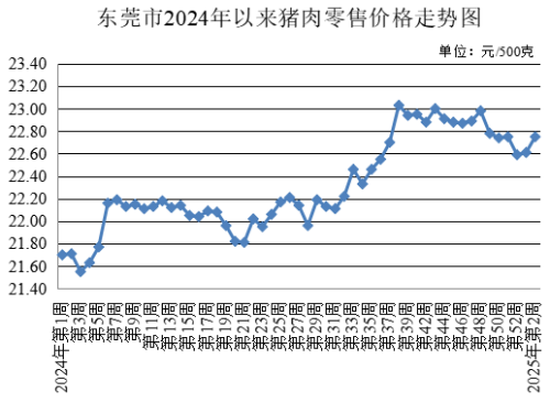 第2周,4種豬肉農(nóng)貿(mào)市場零售均價為(每500克,下同)22.75元,較上周上升0.62%,其中,排骨、精瘦肉、有皮上肉、肋條肉(五花肉)零售均價分別為33.07元、22.55元、17.30元、18.10元,較上周分別上升1.047%、持平、上升0.70%、上升0.56%。