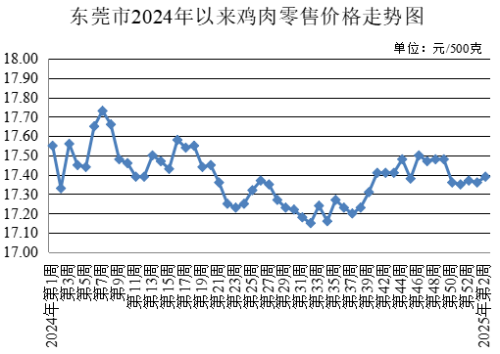 第2周,牛肉農(nóng)貿(mào)市場零售均價為每500克46.84元,較上周下降0.04%。牛腩農(nóng)貿(mào)市場零售均價為每500克43.59元,較上周上升0.21%。雞肉農(nóng)貿(mào)市場零售均價為每500克17.39元,較上周上升0.17%。