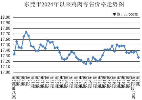 第3周,牛肉農貿市場零售均價為每500克46.80元,較上周下降0.09%。牛腩農貿市場零售均價為每500克43.50元,較上周下降0.21%。雞肉農貿市場零售均價為每500克17.27元,較上周下降0.69%。