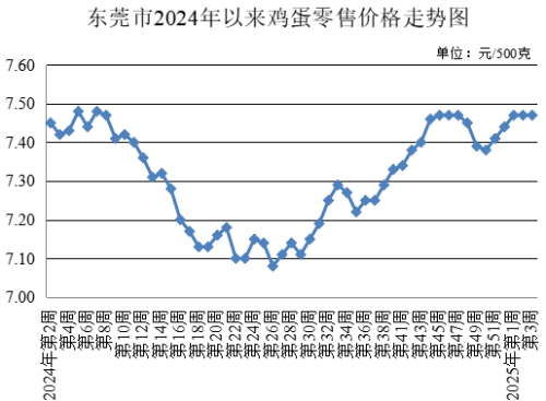 第3周,雞蛋農貿市場零售均價為每500克7.47元,與上周持平。