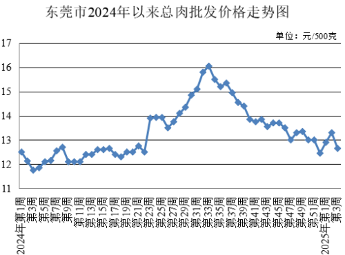 第3周,生豬出場價格為每公斤16元,較上周下降5.88%。總肉批發均價為每500克12.65元,較上周下降4.89%。