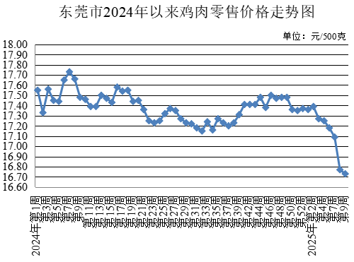 第9周,所監測的牛肉農貿市場零售均價為每500克46.59元,較上周下降0.19%。牛腩農貿市場零售均價為每500克43.09元,較上周下降0.12%。雞肉農貿市場零售均價為每500克16.73元,較上周下降0.24%。